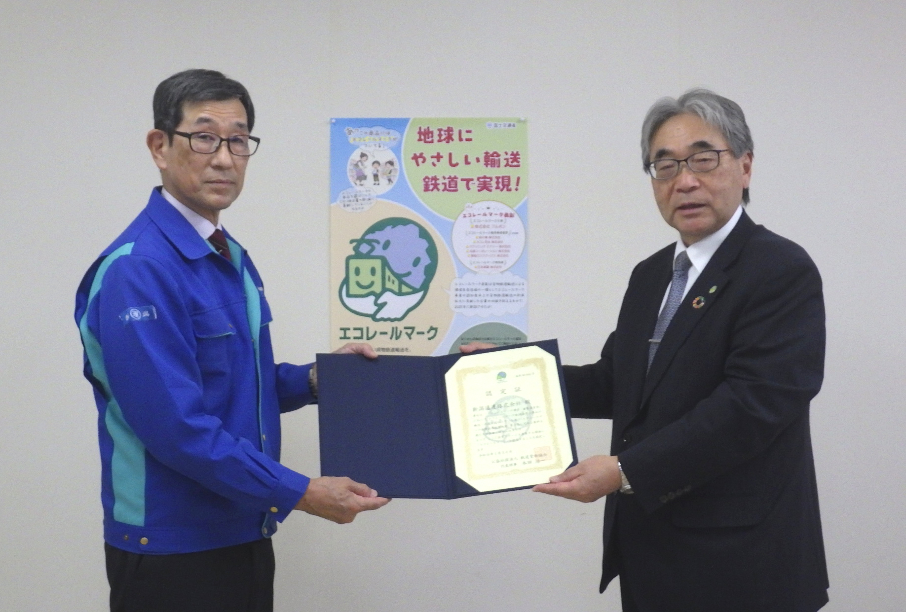 において、エコレールマーク取組企業として認定されました。 本認定は、環境負荷の少ない鉄道貨物